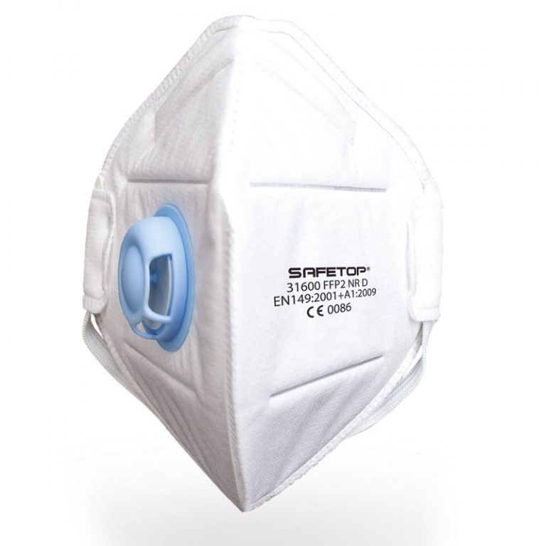 FFP2 NR D, mascarilla plegable vertical válvula metal free (caja de 12 unids)